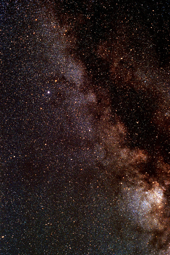 The galactic plane crosses the entire field of view. Bright star fields form the visual appearance of the milky way, especially the Scutum star cloud at the lower right corner of the image is a very fine object to the naked eye under a dark sky. In contrast to these star fields are the light absorbing interstellar dust clouds which give the dark patches all along the milky way. A couple of nice galactic deep sky objects for binocular and telescopic observations join the field. In the above photography, taken in May 2000, the 4 mag bright Nova V 1494 Aql of December 1999 has already faded to about tenth magnitude.