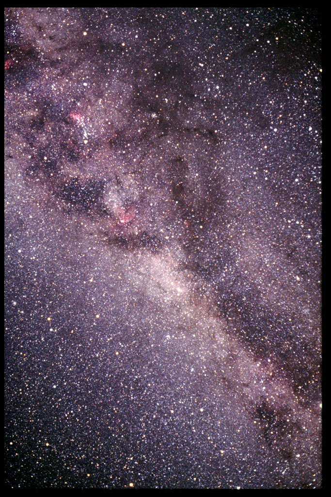 The galactic equator is crossing our field of view and the galactic center is