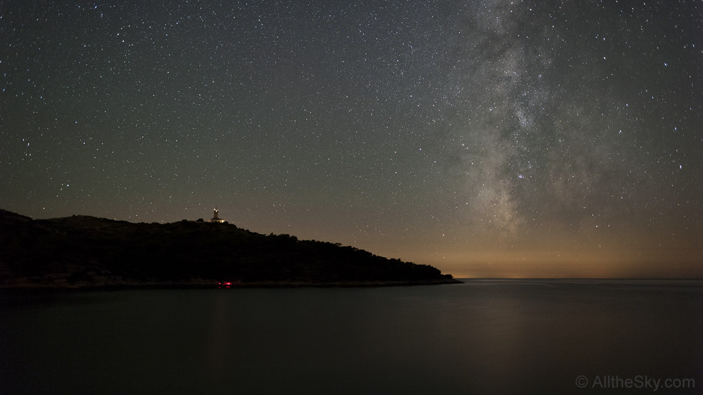 Beside of this, the island of Lastovo is a very interesting target for astronomers from central Europe. The bright fishing boats were visible only in the north-eastern direction. Lastovo cares a lot for a natural night sky. Public lighting is completely shielded, amber colored, moderately used, and energy efficient. The landscpape by night is lit very naturally just by the starry sky!